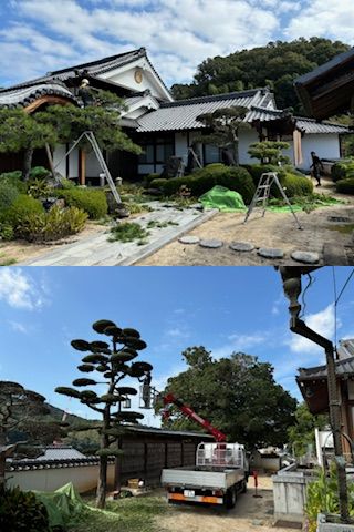 永代経法座を前に、剪定作業が行われました。みなさま、どうぞお参りください。