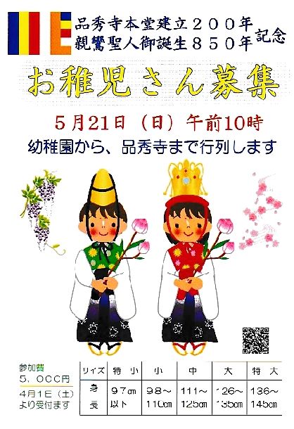 2023.03.26 お稚児さん募集します 5月21日(日)