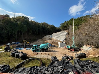 西日本豪雨で、河川が崩落した水谷峡の防災工事が進んでいます。山ののり面の補強や堰堤が施工されるようですが、大工事です。