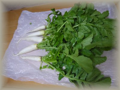 今日…「大根のまびき菜が沢山有るから取りにきんさい」と声をかけてくださいました。行ってみると想像していた物とは大違い…!