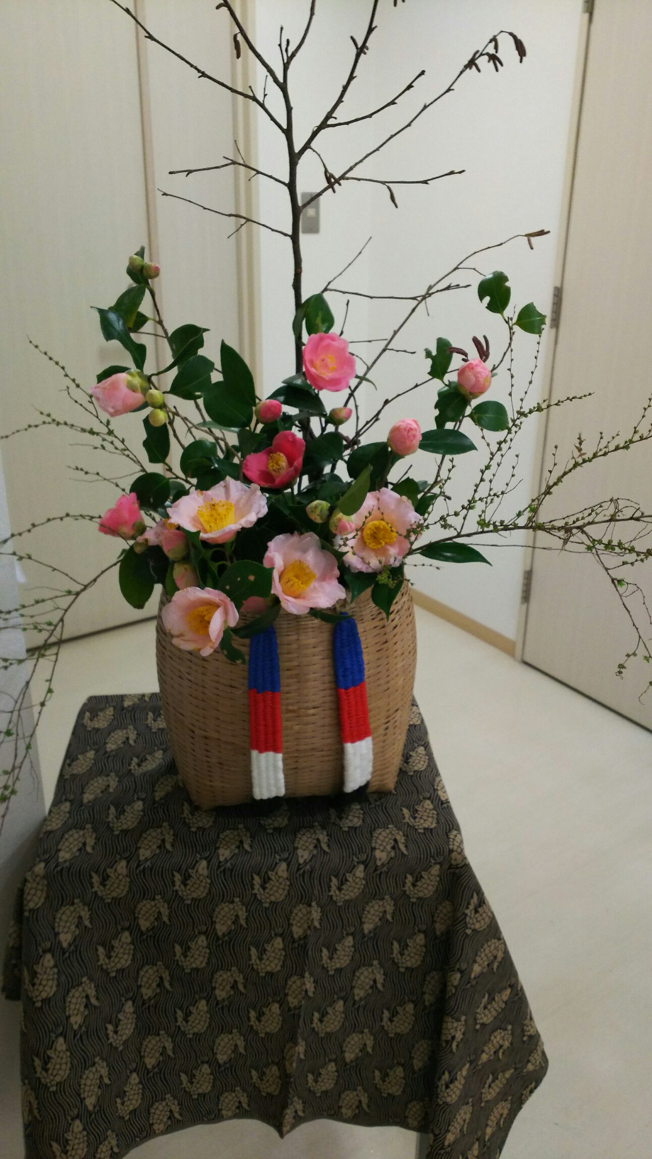 いつもお寺の行事の度に見事な花をいけて下さる木井直さん…今日は農協婦人部さんの連絡協議会に入口、階段、ホールと4ヶ所いけて有りました。