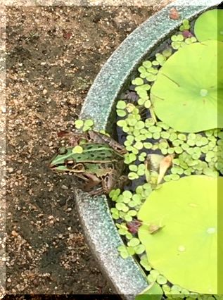 するとカエルくんも出てきていました。「ん!今日は雨 降らないのか?」と言わんばかりに、近づいても逃げませんでした。